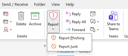 Reporting the message to Microsoft is the fastest way to mitigate junk and phishing messages.